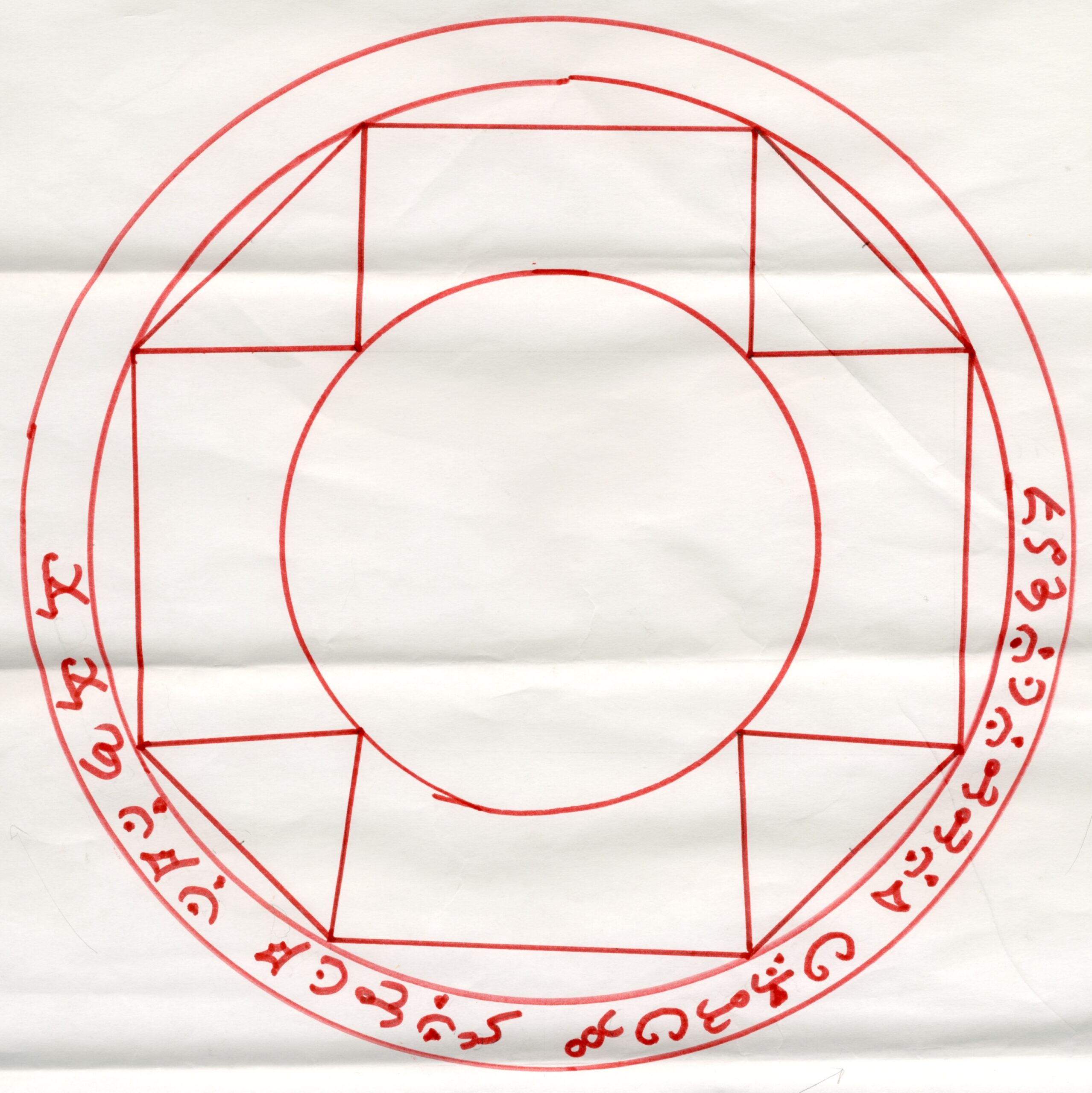 Tutto ciò che è tracciato all’interno del rituale deve essere iscritto in un cerchio. Non possono esservi elementi del rituale che siano esterni a un cerchio. È tuttavia possibile tracciare un secondo cerchio più interno, e in tal caso il rituale si dice distribuito su più livelli. Ogni livello di un rituale deve essere completato con la medesima cura di un rituale a sé stante. Il testo del rituale deve descriverne l’effetto e va inscritto in un anello, ovvero nello spazio compreso tra due cerchi. Si possono inserire nel rituale i simboli sacri degli Dèi per chiederne il favore ed evocarne la possenza, ma non vi è garanzia alcuna che si ottengano così i risultati sperati. Tanto più è complesso il testo di un rituale, tanto maggiore sarà il suo costo per l’incantatore. Spesso i risultati migliori si ottengono con poche parole scelte accuratamente; alcuni ritengono che tracciare il testo di un rituale rappresenti un’arte a sé.