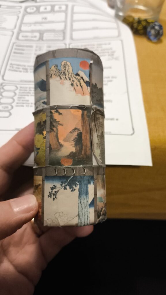 Weiss crea la capanna di Leomund e quando siamo al suo interno ci cura tutti. Finito un riposo breve, Minerva esce e casta la percezione del male. Il gruppo esplora la zona per capire qual’è la direzione verso la prossima destinazione. Xyr scala l’albero fino in cima, e si ritrova sopra le fronde di tutti gli alberi
