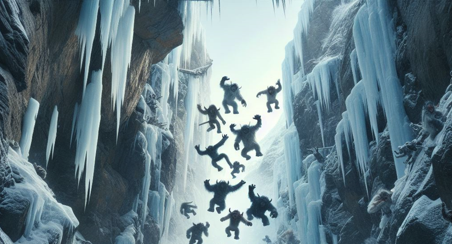 Dopo diversi secondi di planata, sentiamo il tonfo dei troll nel pavimento sottostante, seguiti dal rumore di roccia che si