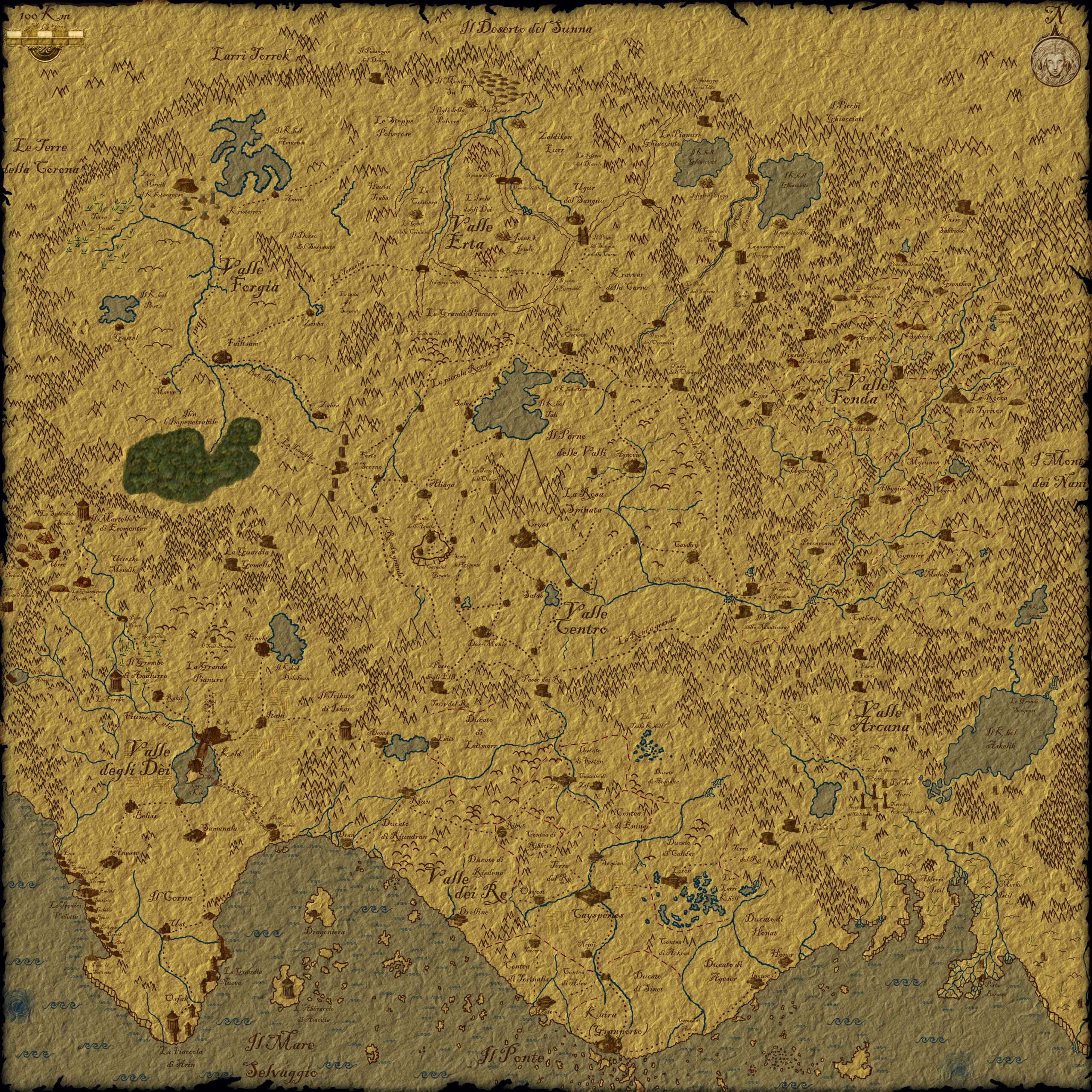 Il mondo noto è composto da cinque grandi regioni: la Ruota delle Valli, le terre degli Elfi, i monti dei Nani, il deserto del Sunna e le terre della Corona. La Ruota delle Valli confina con tre di queste regioni, fatta eccezione per le terre degli elfi.